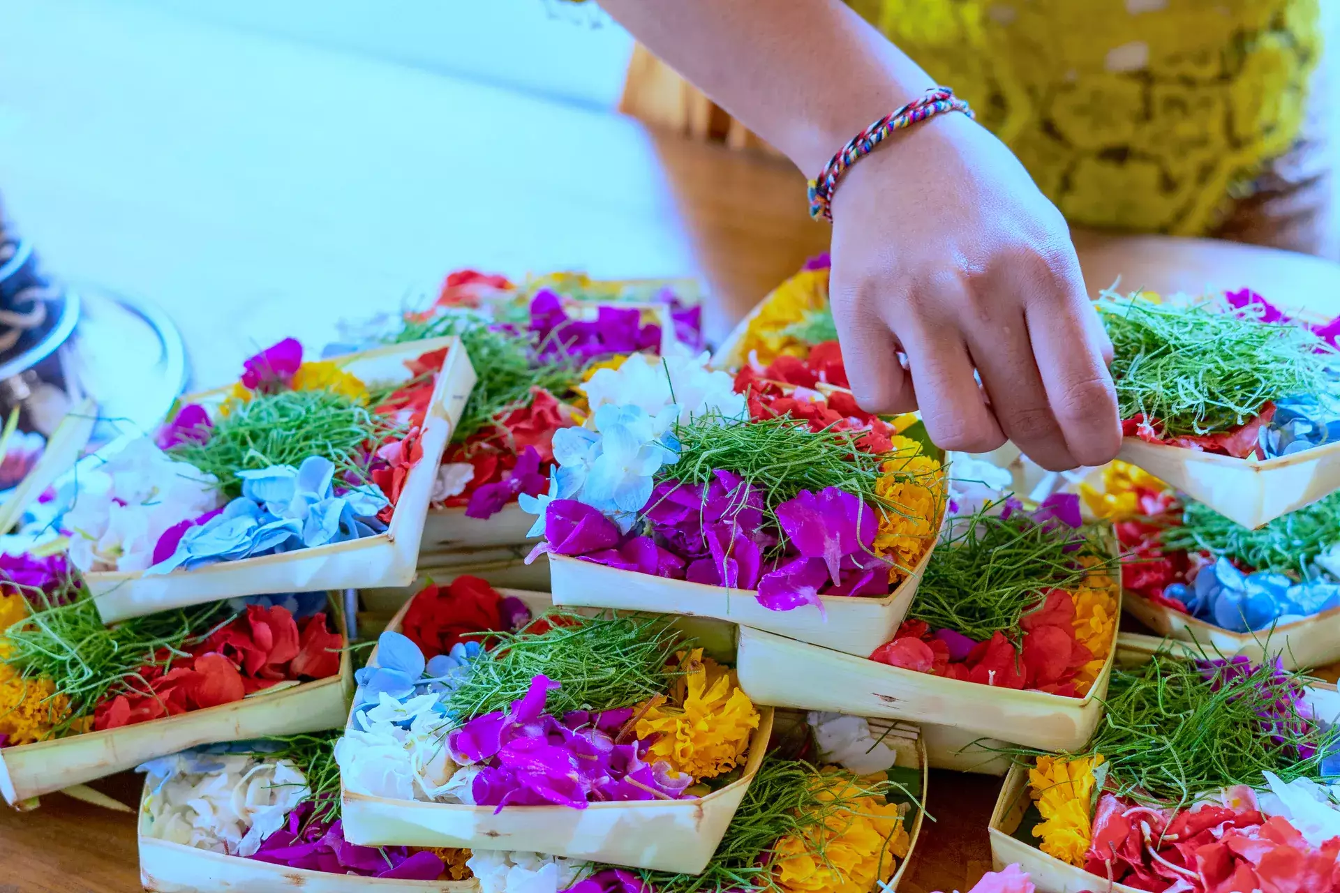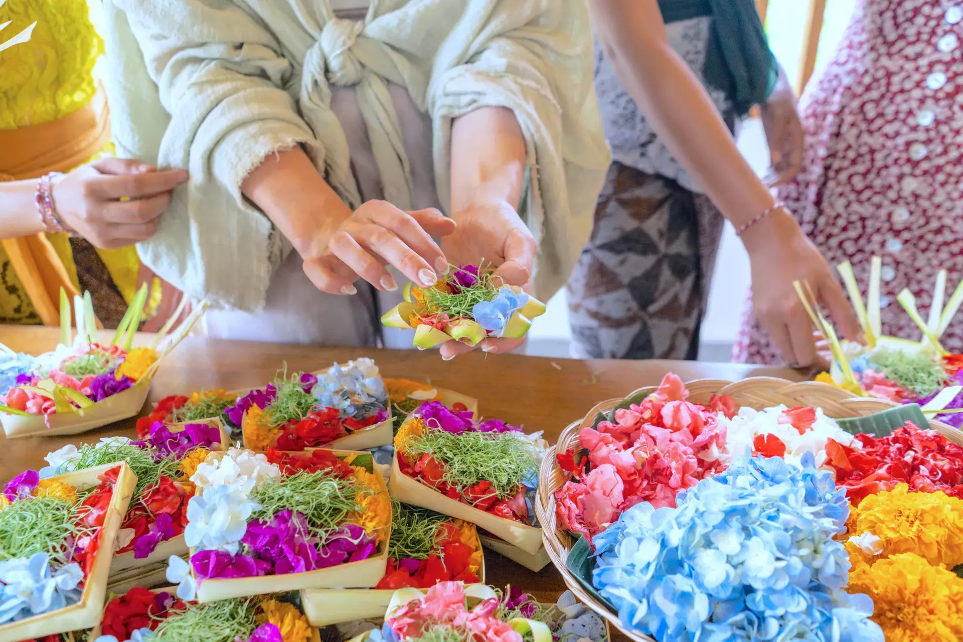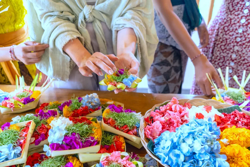 Immerse yourself in the heart of Balinese culture through a hands-on journey of beauty, symbolism, and tradition. In this session, participants learn to craft traditional offerings and ceremonial decorations using natural materials such as coconut leaves and fresh flowers.
